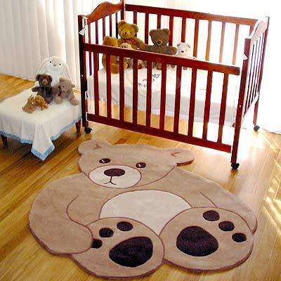 Las alfombras con formas, como esta de vaca, también resultan muy divertidas.