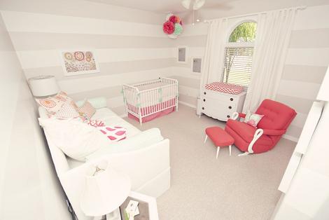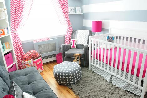 Habitación bebé muy chic en gris y fucsia