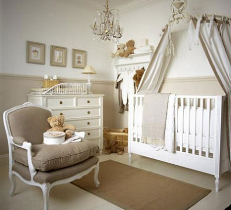 habitacion bebe princesa grisComo en este ejemplo, un dormitorio de princesas no tiene porqué ser rosa; sino fíjate en este tan mono en tonos ocres!