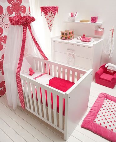 habitacion bebe princesa lunaresEl dosel en las cunas es una de las ideas más originales para tu habitación de bebé de princesas!