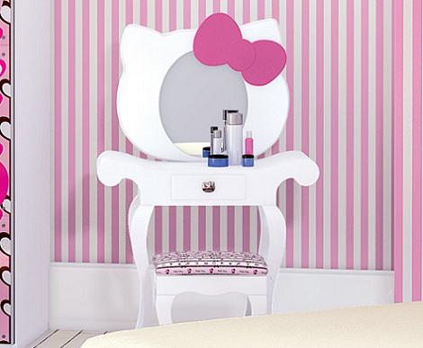 Un detalle fantástico de la habitación es el tocador Hello Kitty.