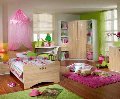 habitacion princesa coloresUna forma de que la habitación de princesa no quede tan monótona es combinando varios colores; el verde y rosa me parecen genial!