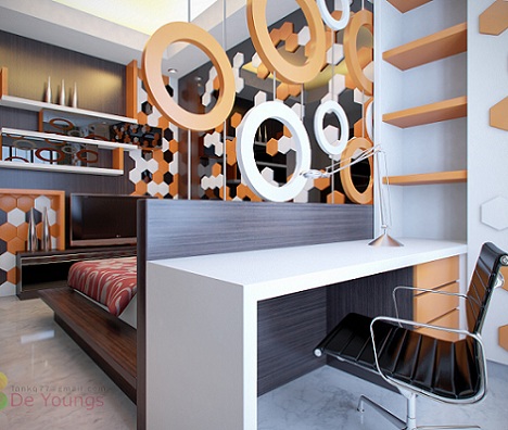 Los dormitorios juveniles de chicos siempre tienden a proponer colores como el azul o el verde, ¿porqué no colores más vivos como el naranja?