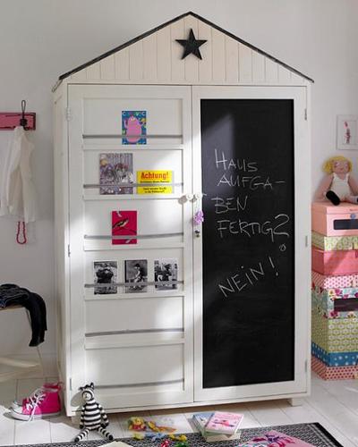 De entre todos los armarios originales para niños, mi favorito sin duda alguna, es el que ves en portada: el armario robot, que quedaría ideal en la habitación de bebé con originales robots que vimos hace unas semanas. Entrañable y divertido, cuesta 299 euros en Maisons du Monde.
