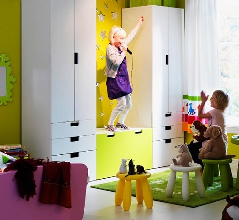 Ikea y niños casi van de la mano. Los diseños atrevidos casan a la perfección con los colores alegres y, además, sus muebles ofrecen diferentes soluciones según el tamaño del que se disponga.