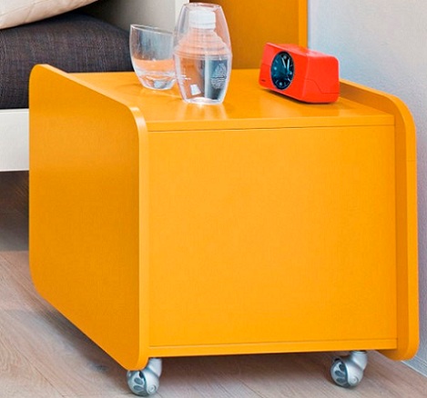 Una de las mejores elecciones que puedes hacer es una mesita de noche con ruedas; súper cómoda para cambiarla de sitio, limpiar,etc.