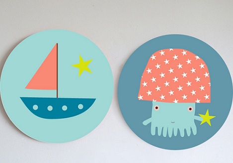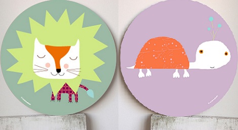 Los cuadros con lienzo cuadrado son un clásico, pero los redondos me parecen más modernos y estéticos en la habitación de los niños.