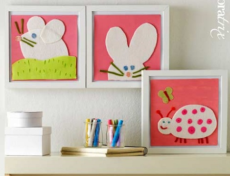 Mi idea favorita para decorar las paredes es que los cuadros los hagan los propios niños, como estos hechos con fieltro que propone Decoratrix.